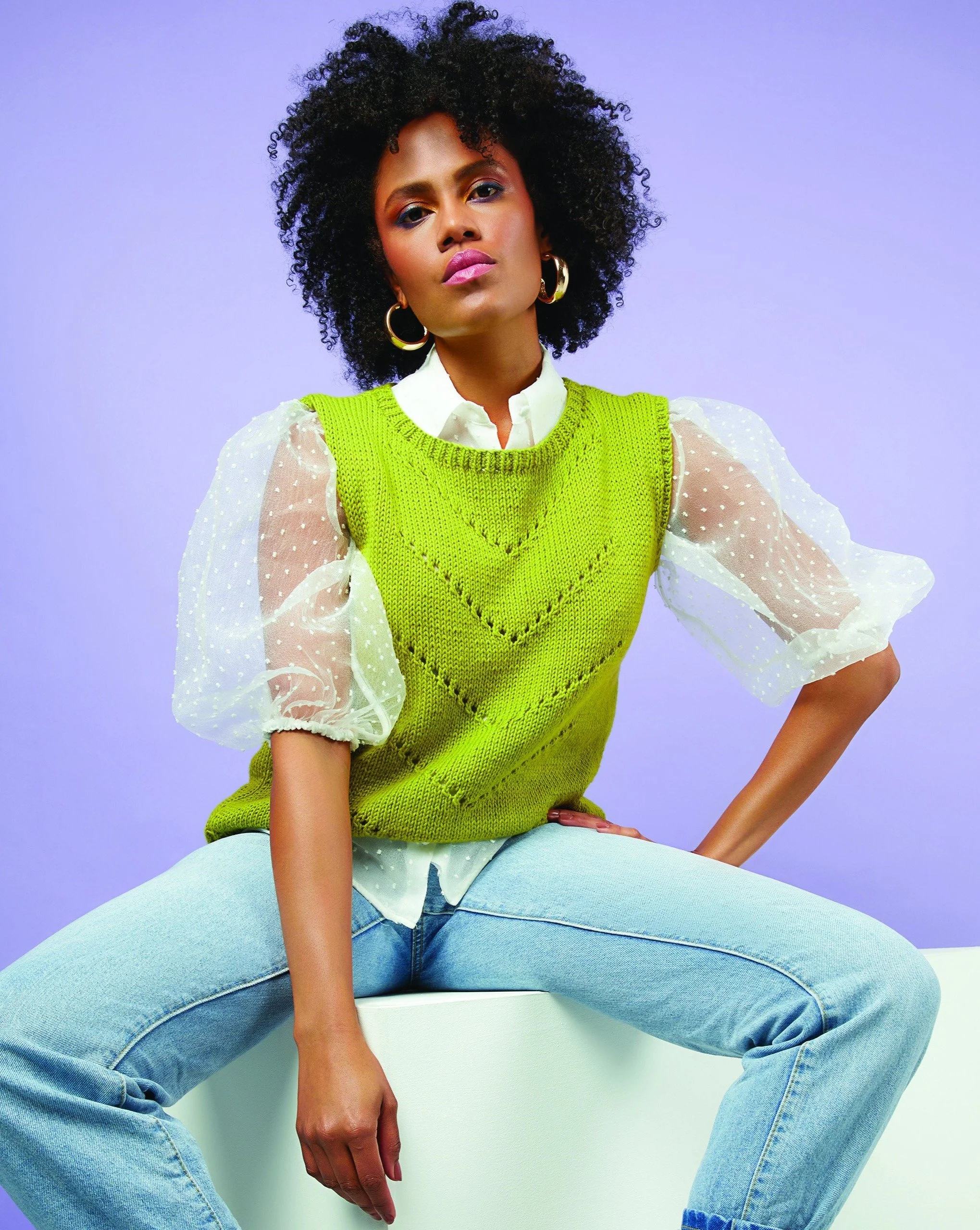 These patterns are guaranteed to make your outfit pop! This stunning on-trend sleeveless tank top looks gorgeous on its own for hot days and is easy to layer with dresses and tops on the slightly colder days. We’d recommend some knitting experience for this one but if you’re totally fresh to knitting and fancy making your very own tank top check out our blog on how to knit for beginners.